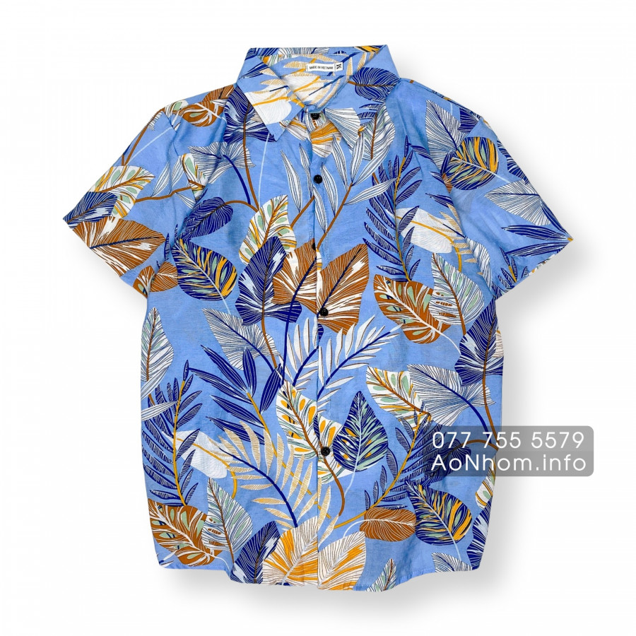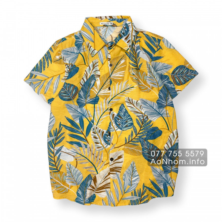 Áo Sơ Mi Đi Biển - Lá Vàng Lá Xanh - Chất Vải Tơ Đũi Mềm Thoáng Mát