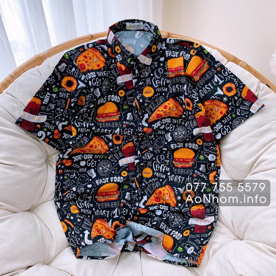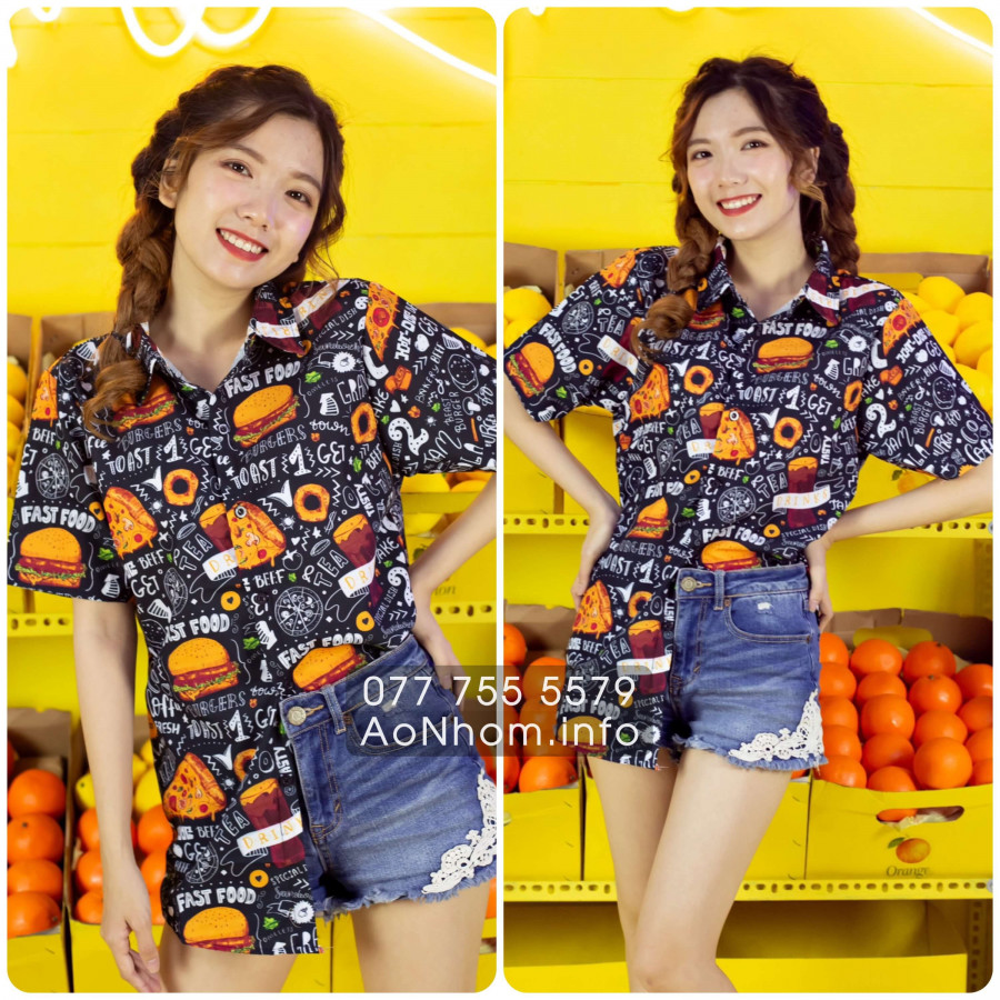 [Hàng Đặt May] Áo Sơ Mi Hoạt Hình - Bánh Bự, Fastfood, Pizza, Hamburger - Áo Đôi Nhóm Lớp Team Building