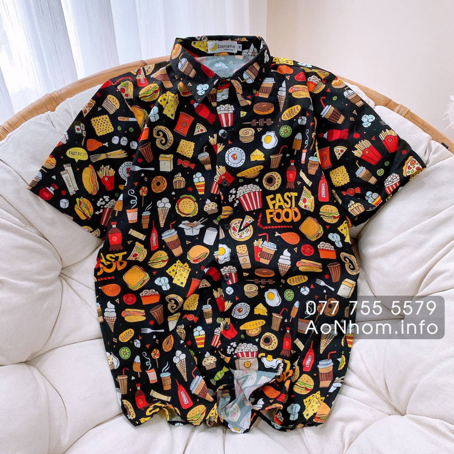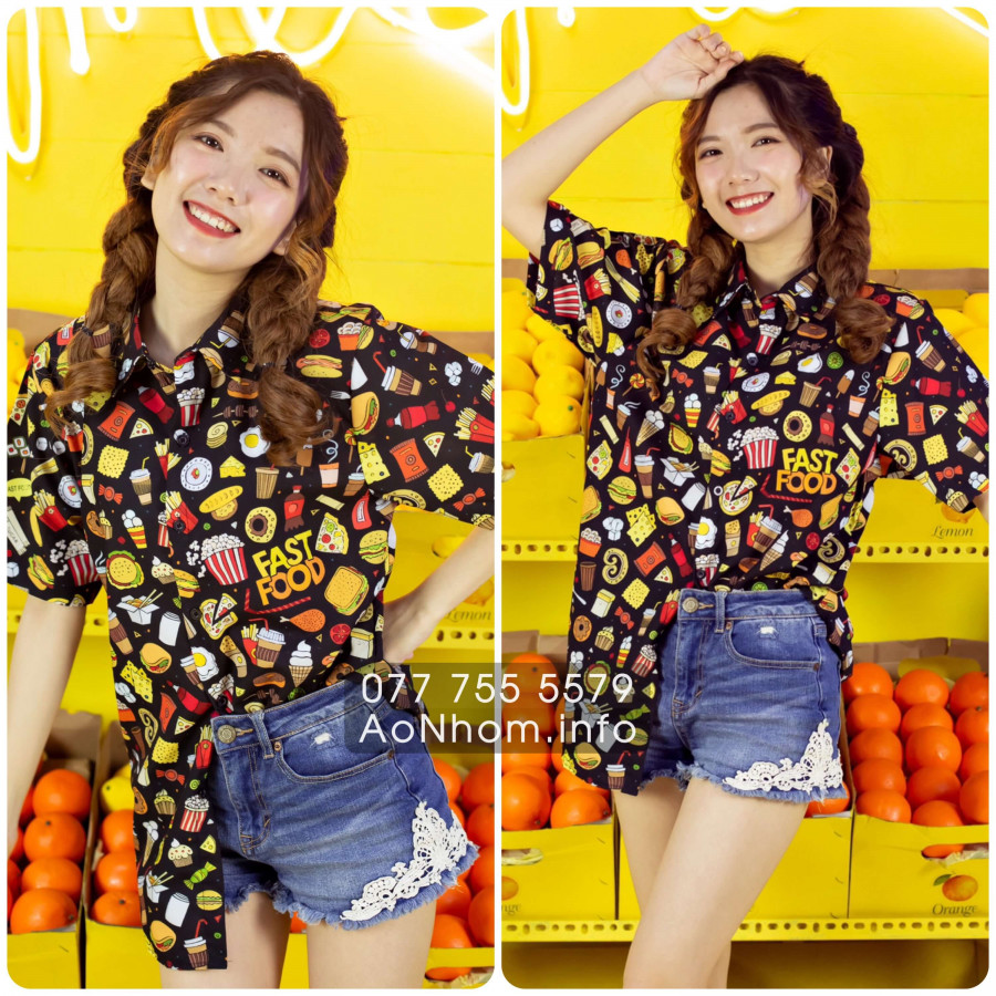 [Hàng Đặt May] Áo Sơ Mi Hoạt Hình - Bánh Nhỏ, Fastfood, Pizza, Hamburger - Áo Đôi Nhóm Lớp Team Building