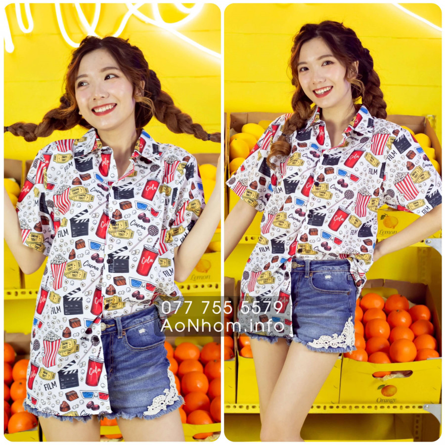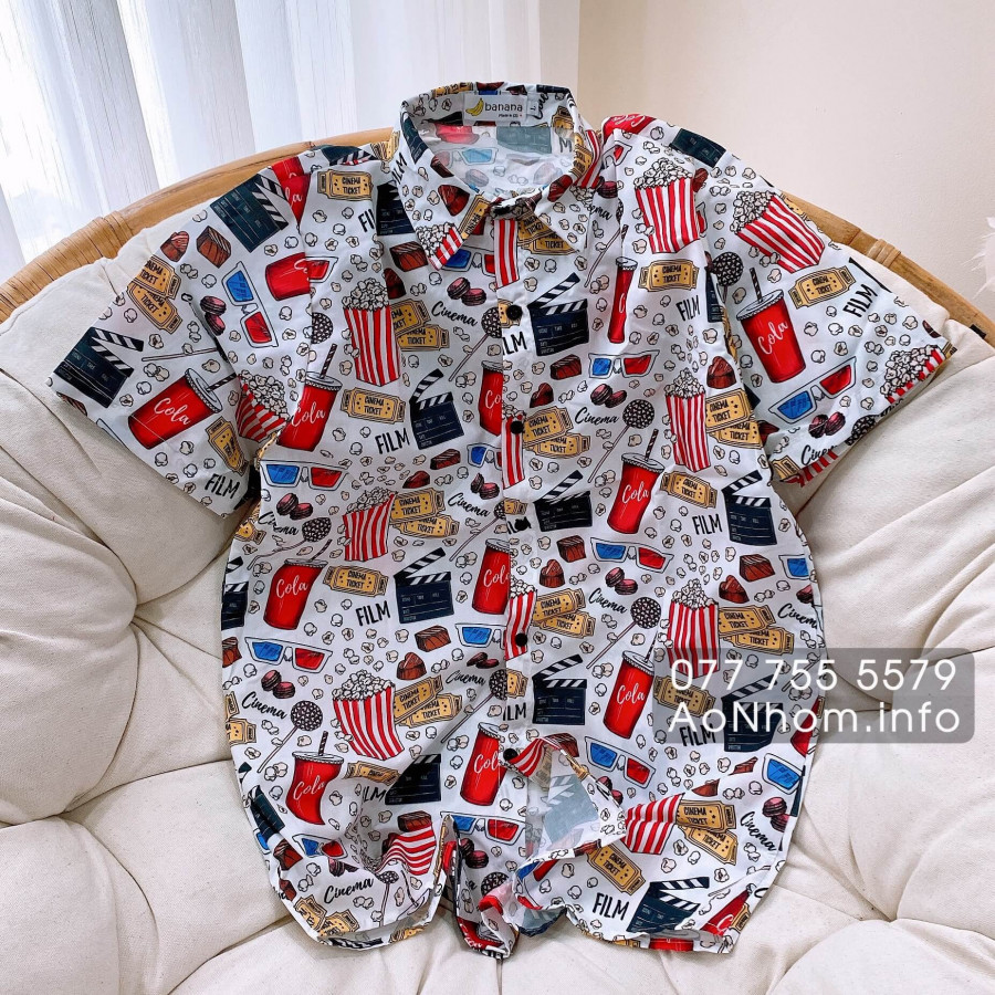 [Hàng Đặt May] Áo Sơ Mi Hoạt Hình - Bắp Rang - Áo Đôi Nhóm Lớp Team Building