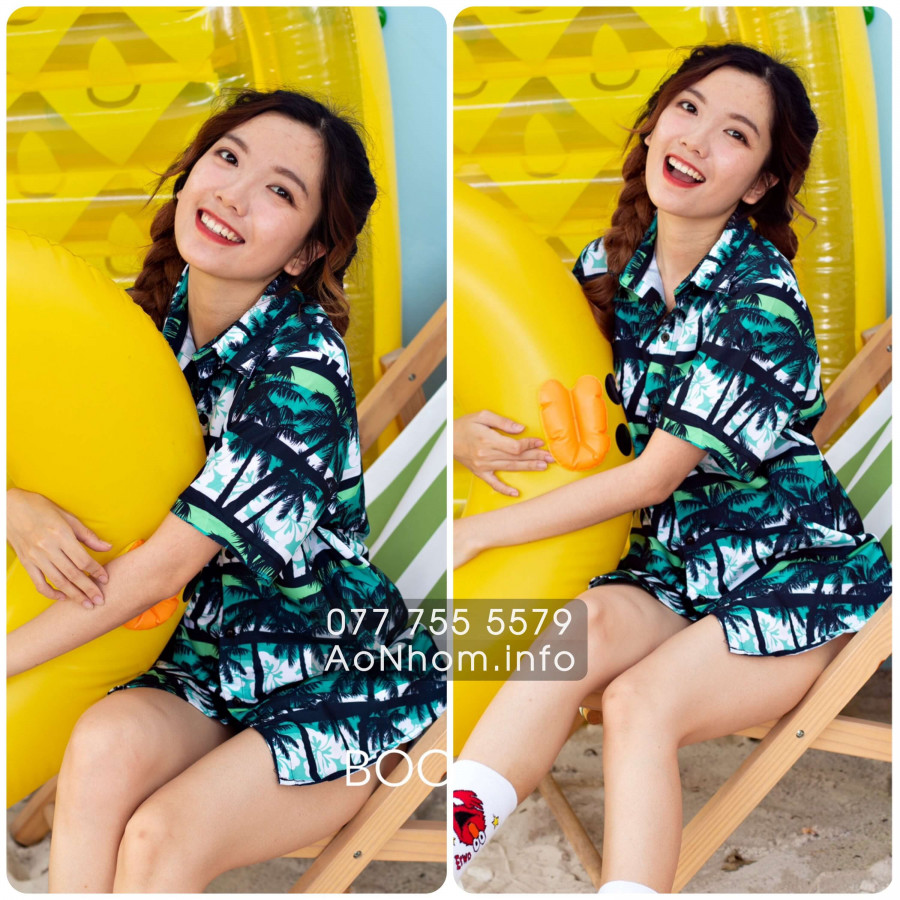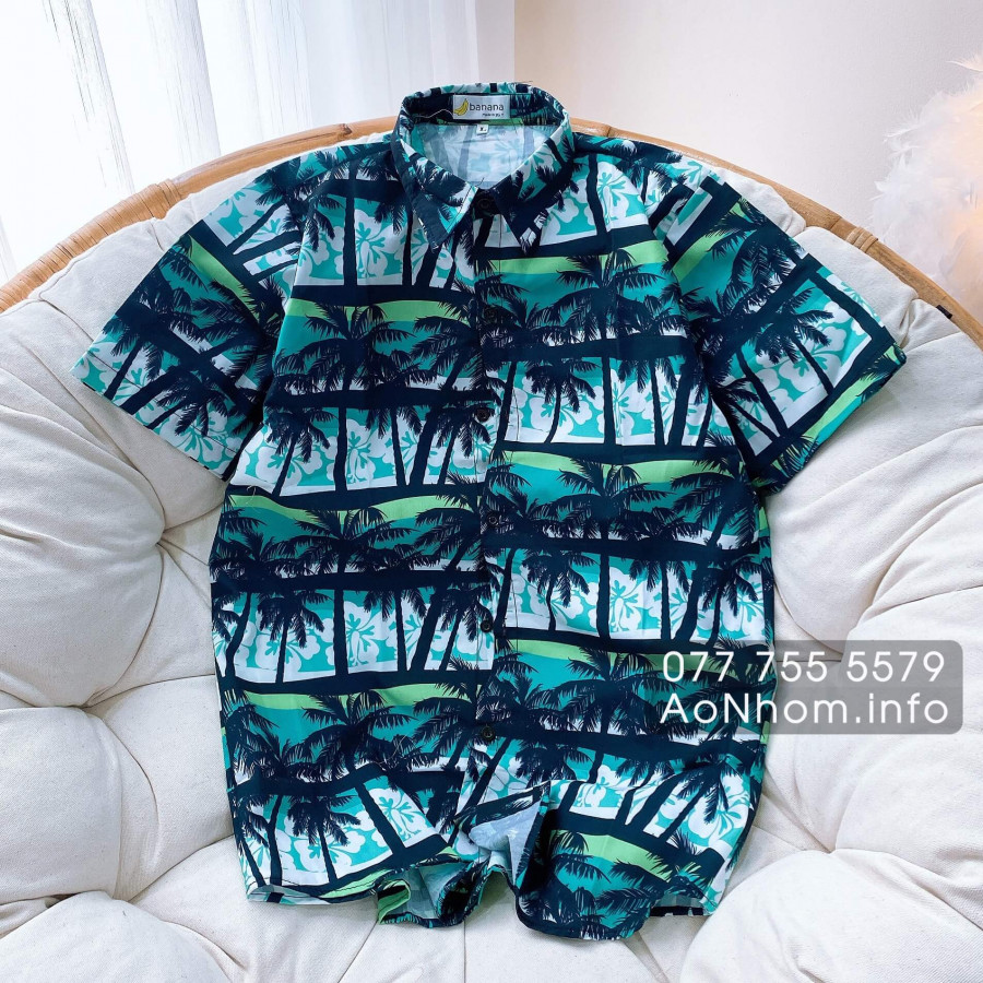 [Hàng Đặt May] Áo Sơ Mi Hoạt Hình - Cây Dừa Xanh Đen - Áo Đôi Nhóm Lớp Team Building