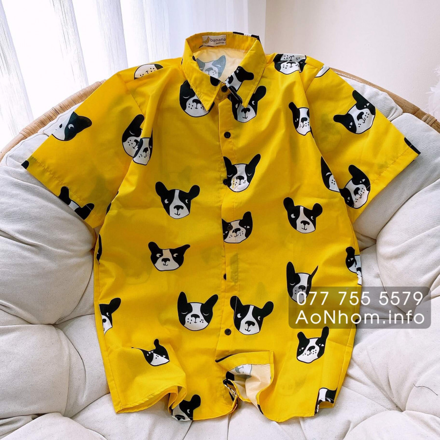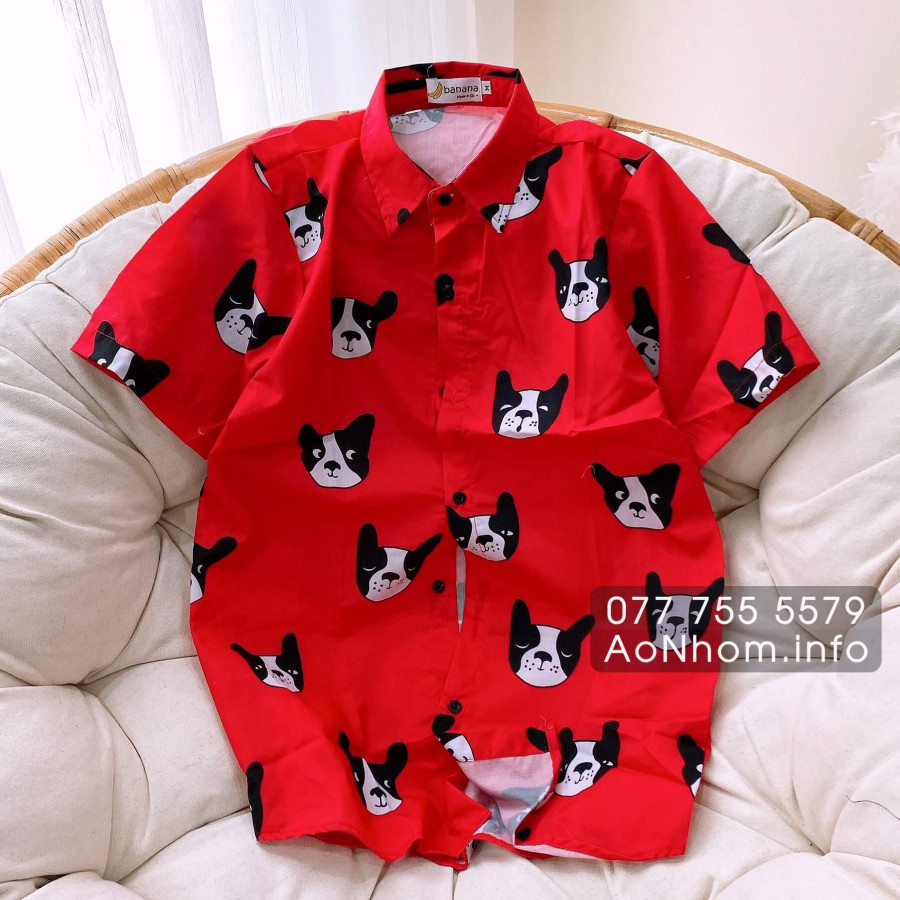 [Hàng Đặt May] Áo Sơ Mi Hoạt Hình - Chó Pull Pháp - Áo Đôi Nhóm Lớp Team Building