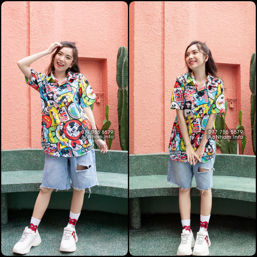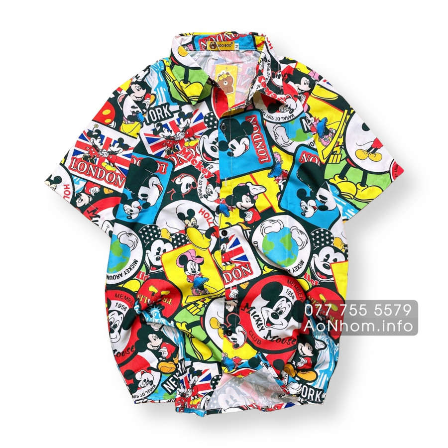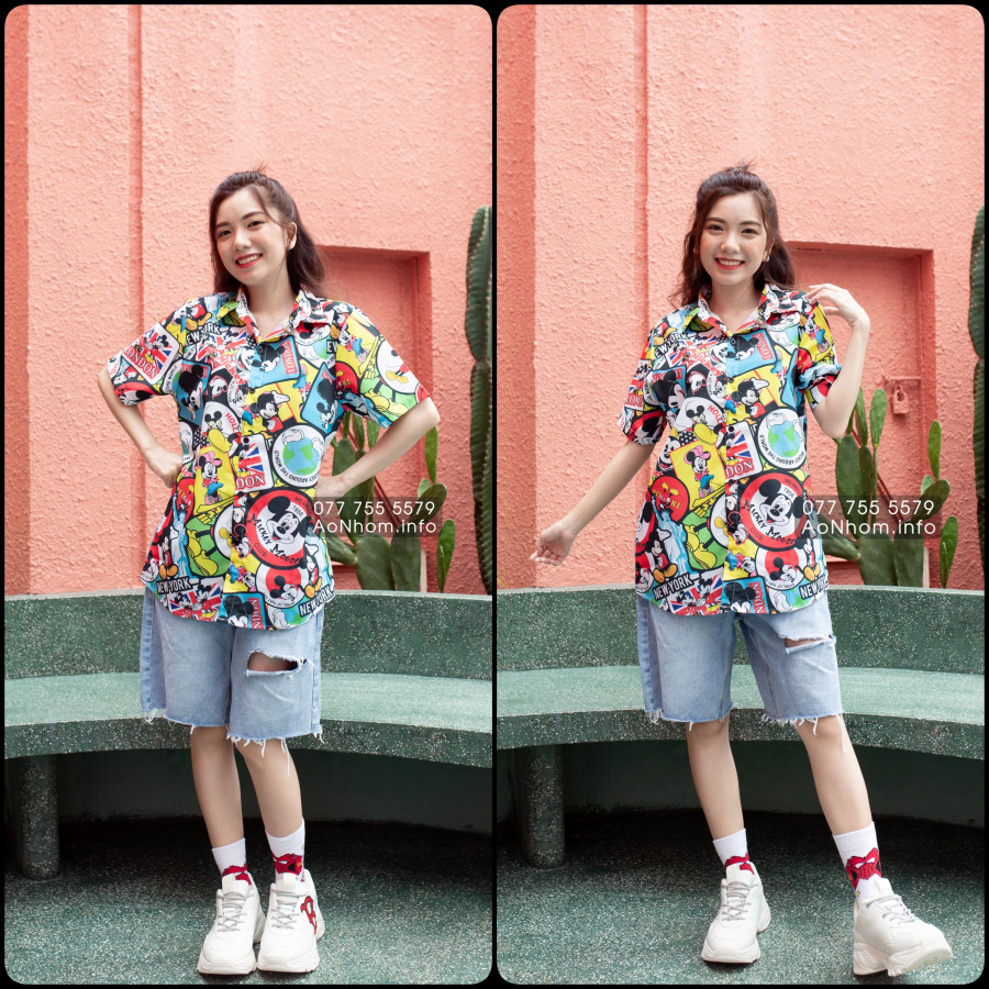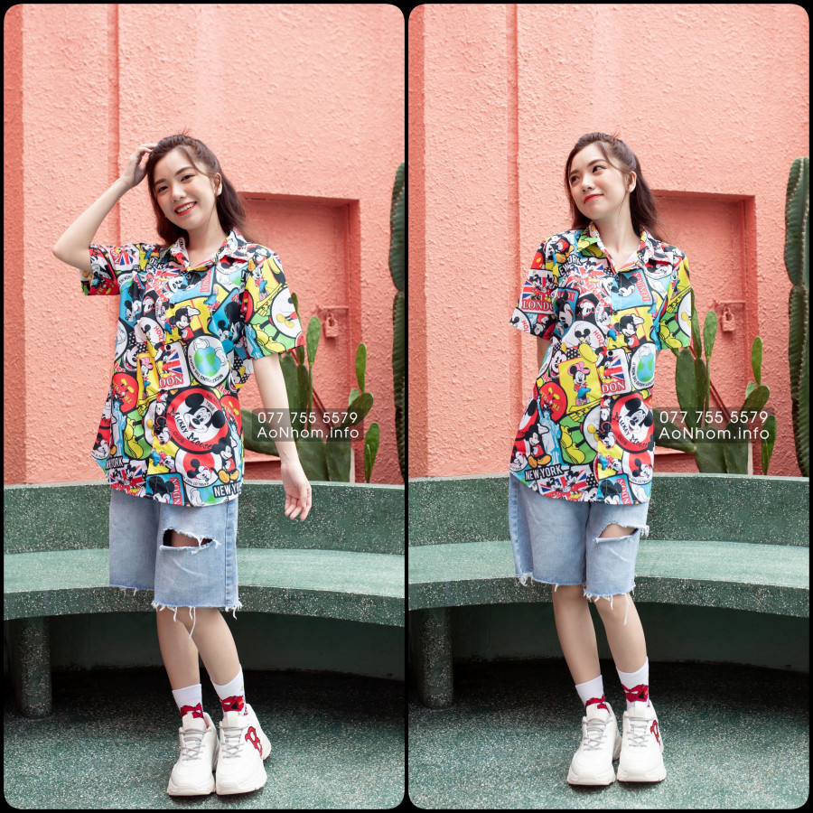 [Hàng Đặt May] Áo Sơ Mi Hoạt Hình - Chuột Mickey Mouse - Áo Đôi Nhóm Lớp Team Building