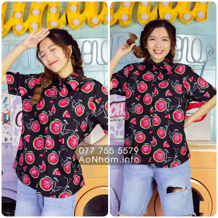 [Hàng Đặt May] Áo Sơ Mi Hoạt Hình - Dưa Hấu Xe Đạp - Áo Đôi Nhóm Lớp Team Building