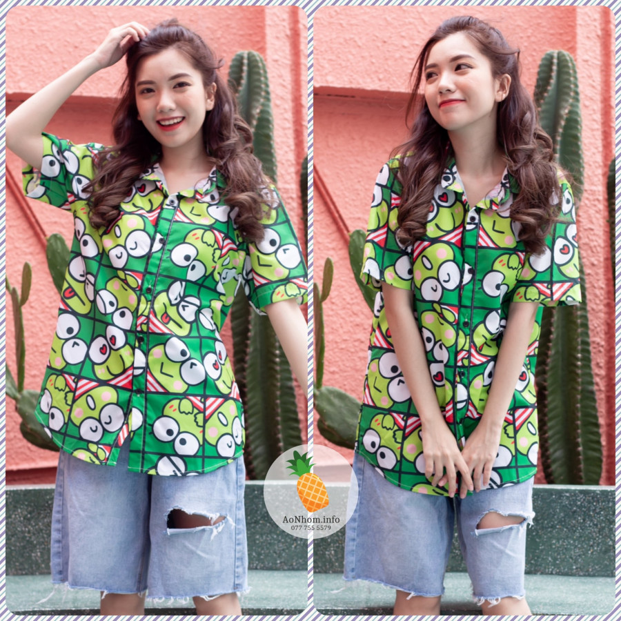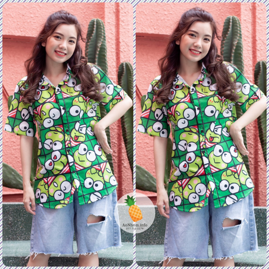 [Hàng Đặt May] Áo Sơ Mi Hoạt Hình - Ếch Xanh Keroppi - Áo Đôi Nhóm Lớp Team Building