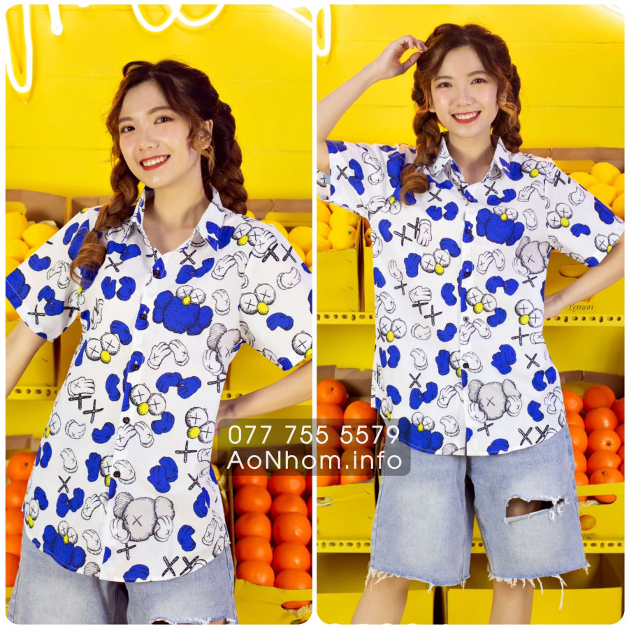 [Hàng Đặt May] Áo Sơ Mi Hoạt Hình - Kaws Xanh - Áo Đôi Nhóm Lớp Team Building