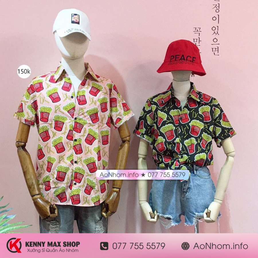 [Hàng Đặt May] Áo Sơ Mi Hoạt Hình - Khoai Tây Chiên - Áo Đôi Nhóm Lớp Team Building