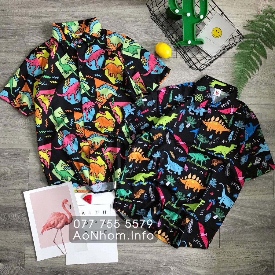 [Hàng Đặt May] Áo Sơ Mi Hoạt Hình - Khủng Long - Áo Đôi Nhóm Lớp Team Building