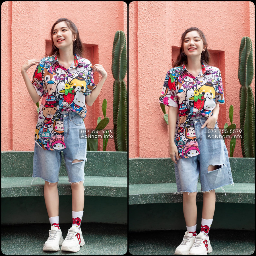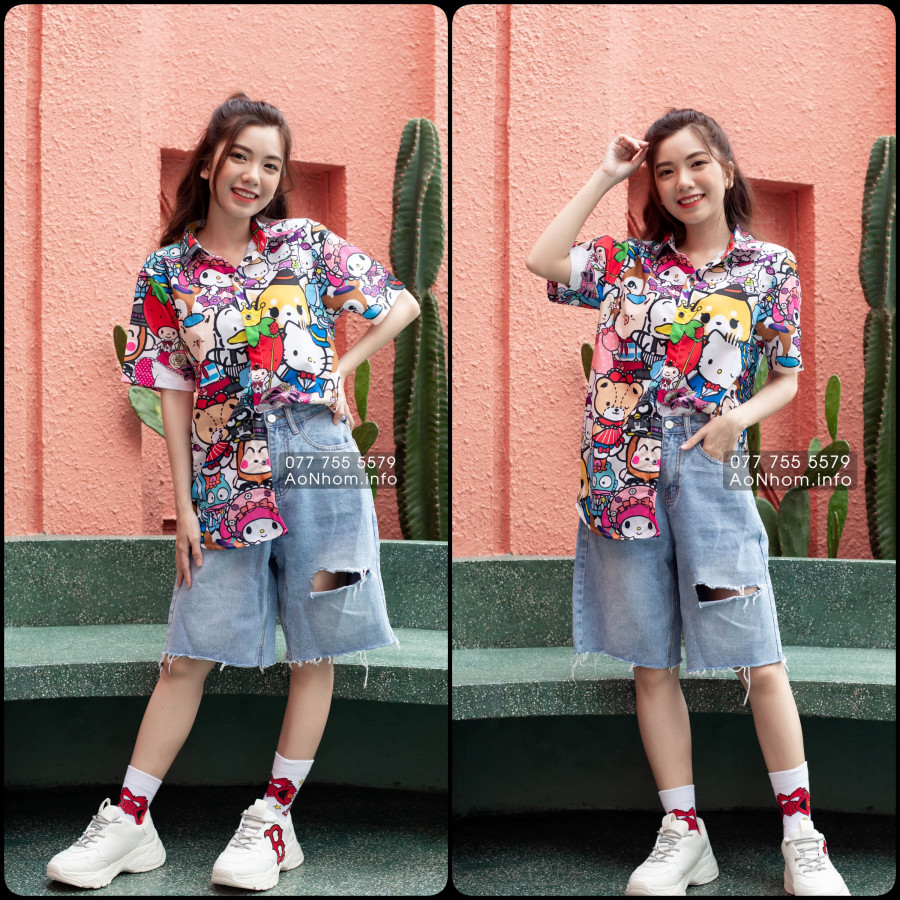 [Hàng Đặt May] Áo Sơ Mi Hoạt Hình - Mèo Kitty - Áo Đôi Nhóm Lớp Team Building
