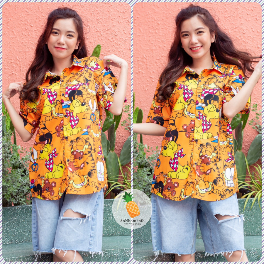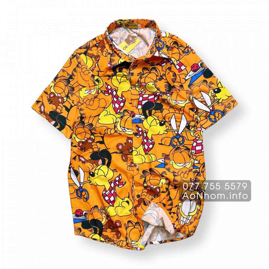 [Hàng Đặt May] Áo Sơ Mi Hoạt Hình - Mèo Siêu Quậy Garfield - Áo Đôi Nhóm Lớp Team Building