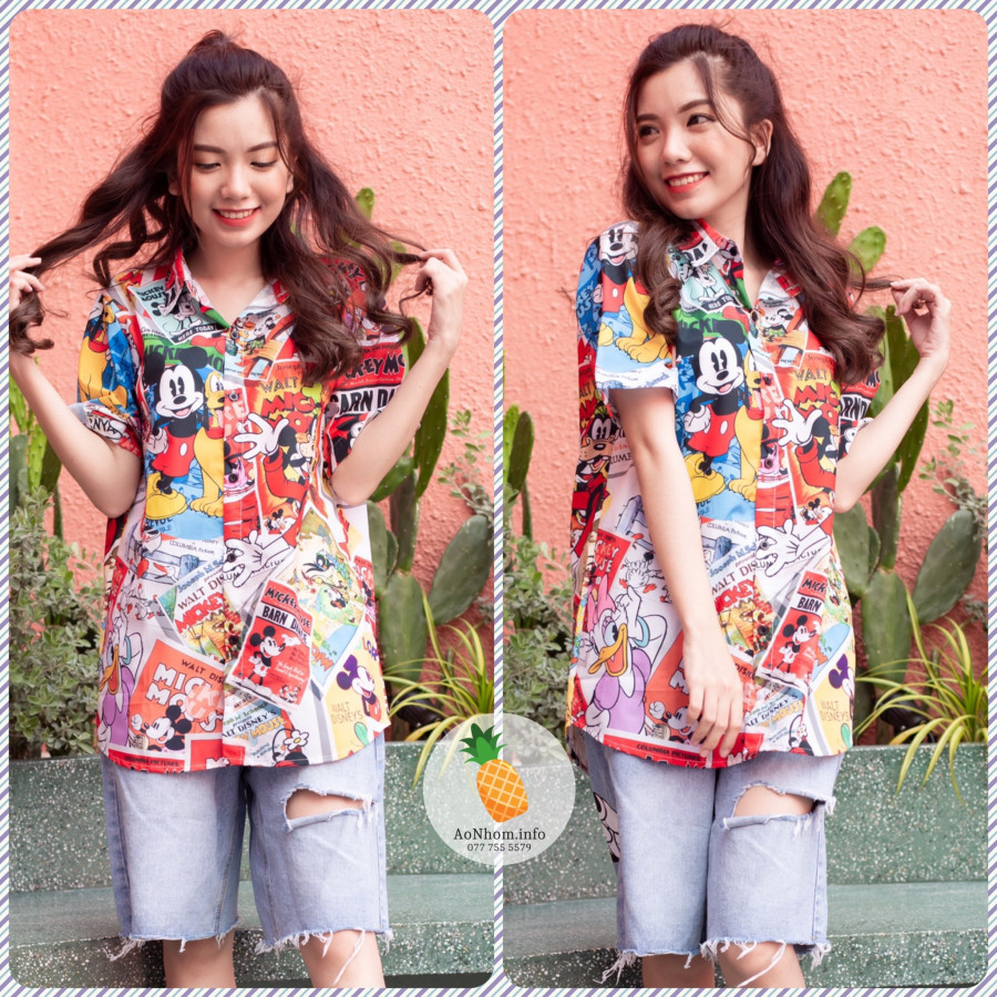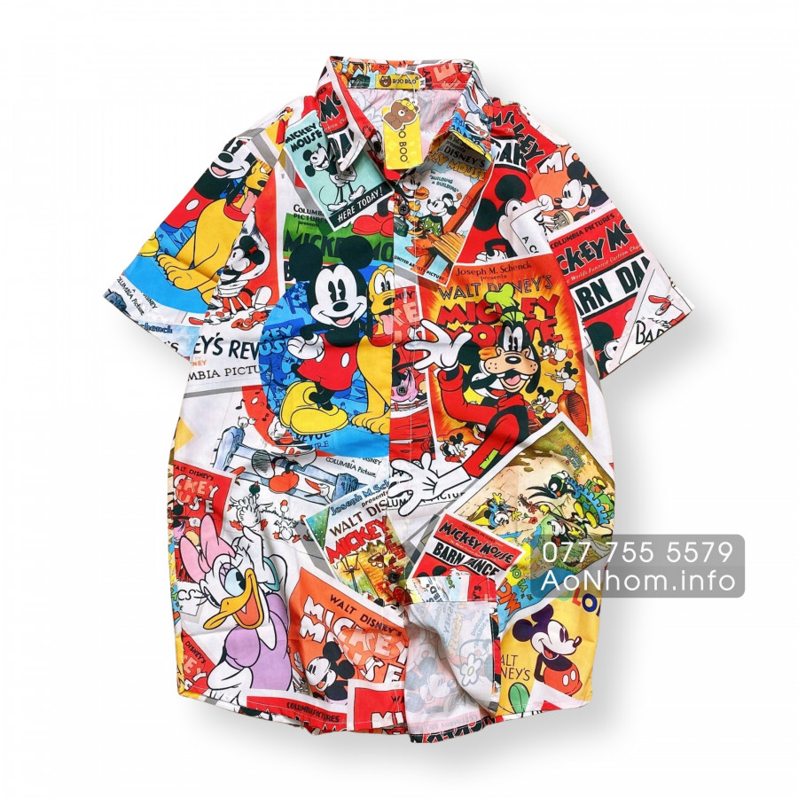 [Hàng Đặt May] Áo Sơ Mi Hoạt Hình - Mickey Mouse - Áo Đôi Nhóm Lớp Team Building