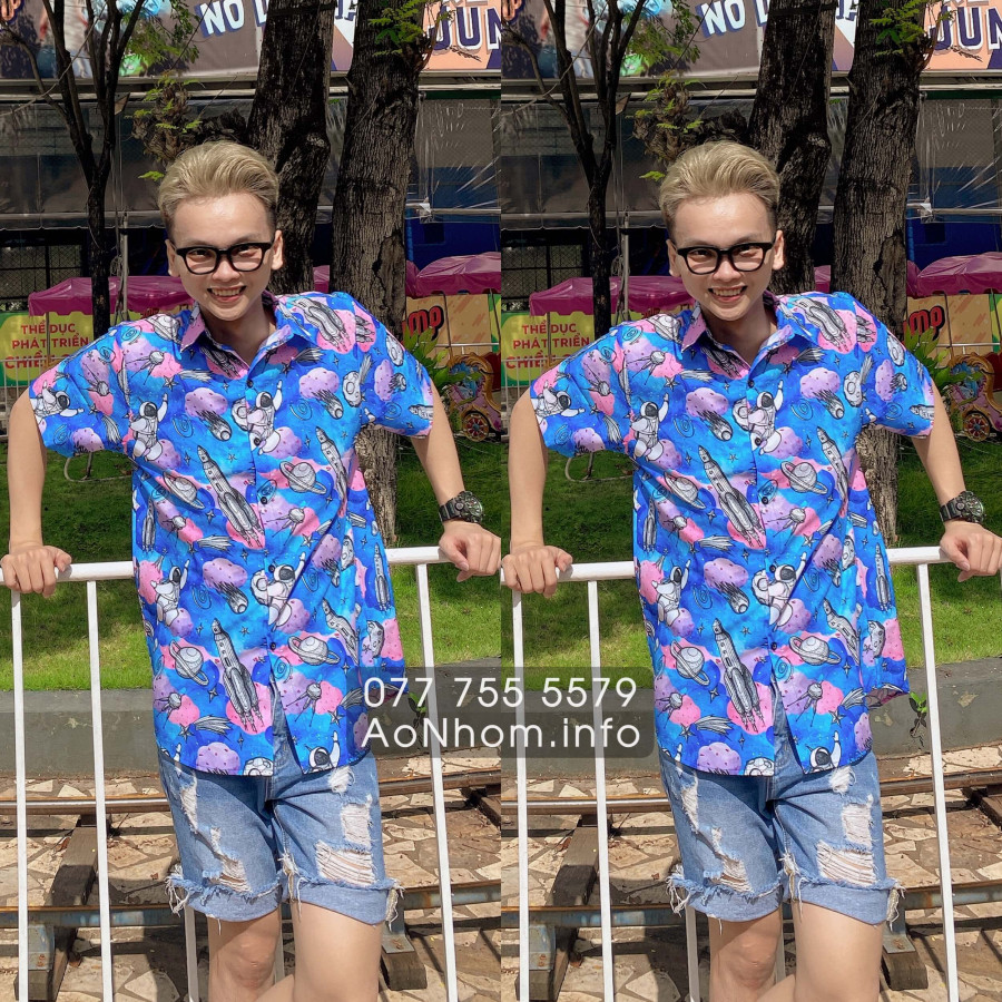 [Hàng Đặt May] Áo Sơ Mi Hoạt Hình - Tàu Vũ Trụ - Áo Đôi Nhóm Lớp Team Building