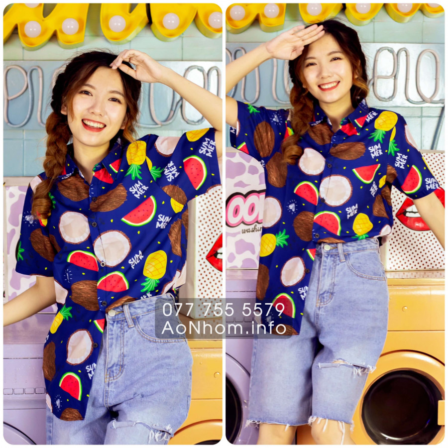 [Hàng Đặt May] Áo Sơ Mi Hoạt Hình - Trái Dừa - Áo Đôi Nhóm Lớp Team Building