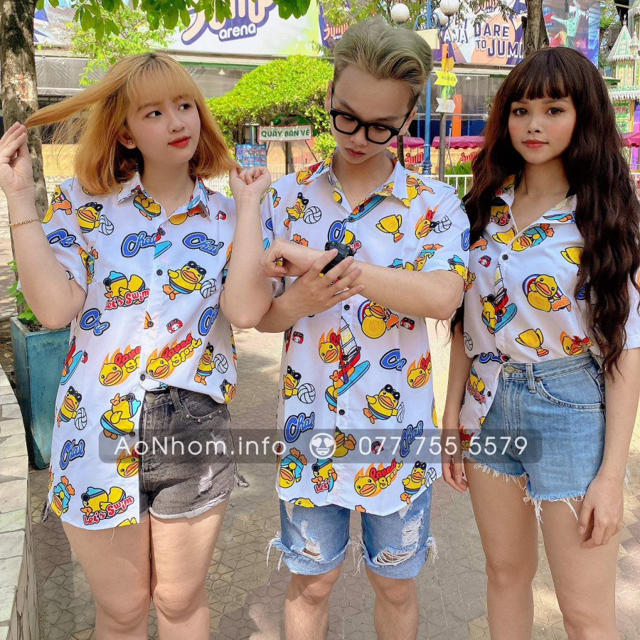 [Hàng Đặt May] Áo Sơ Mi Hoạt Hình - Vịt BDuck Trắng - Áo Đôi Nhóm Lớp Team Building